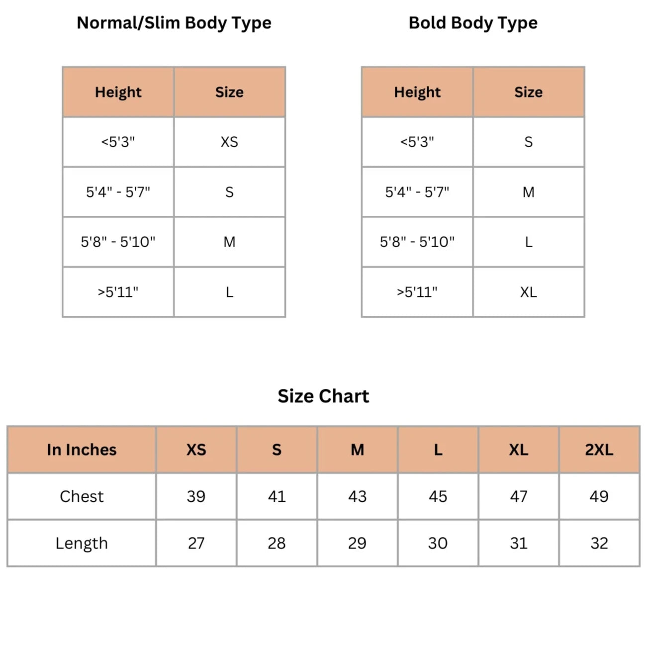 Oversized Fit T-Shirts Size Chart